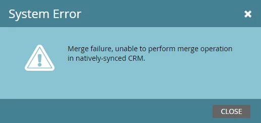 I get the following error - "Merge failure, unable to perform merge operation in natively-synced CRM."