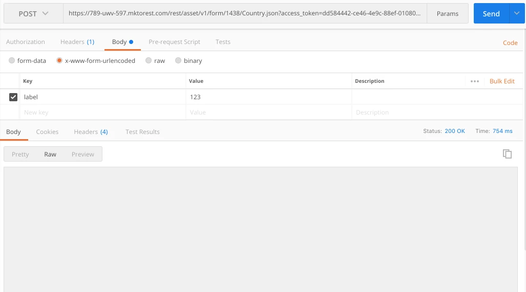 I'm trying to update my Country field values list through REST API request. But update field endpoint always returns the empty string as response.