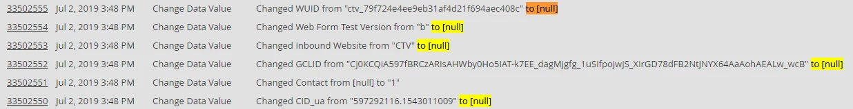 Here's an example of how the Activity Log looks (this record includes all 5 fields that are affected):