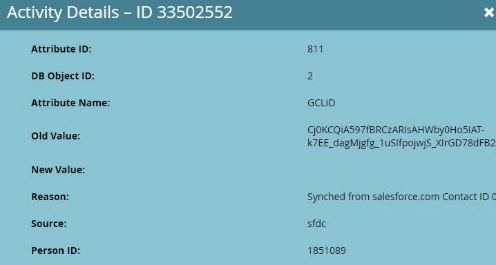 The individual Activity Details for one of the logged events looks like this: