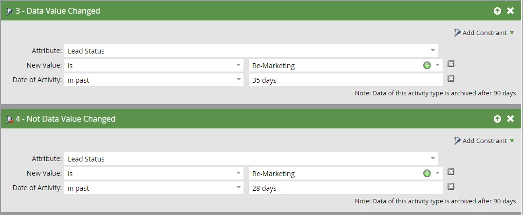 In this example, this would mean people whose lead status changed to re-marketing during the period 9 Dec to 16 Dec 2015.