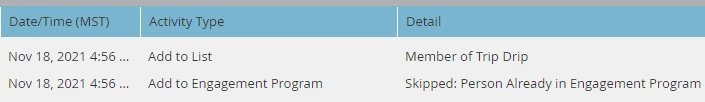 For example, in this lead's activity log, I want to prevent the "Add to List" activity if the "Add to Engagement Program" is "Skipped: Person Already in Engagement Program."