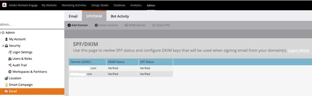 - You can verify SPF/DKIM in Marketo by going to Admin > Email > SPF/DKIM