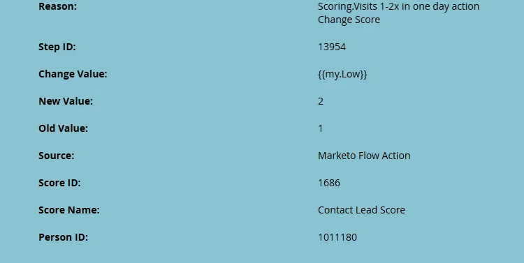 Today, when a Marketo user accesses the REST API and reads Activity ID #22 (Change Score), the primary attribute is called "Score Name". This is defined as an integer. However, the integral value does not provide a match with other calls, like checking object fields.