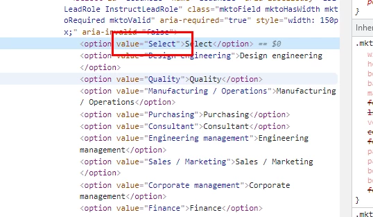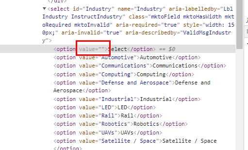 To prove this, I inspected the form elements and altered the select option for industry.
