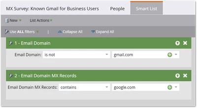 Wouldn’t it be nice to have some idea of how many people will be reading your emails in at least one Gmail client — in addition to those literally @gmail.com? A Smart List like this’d do it: