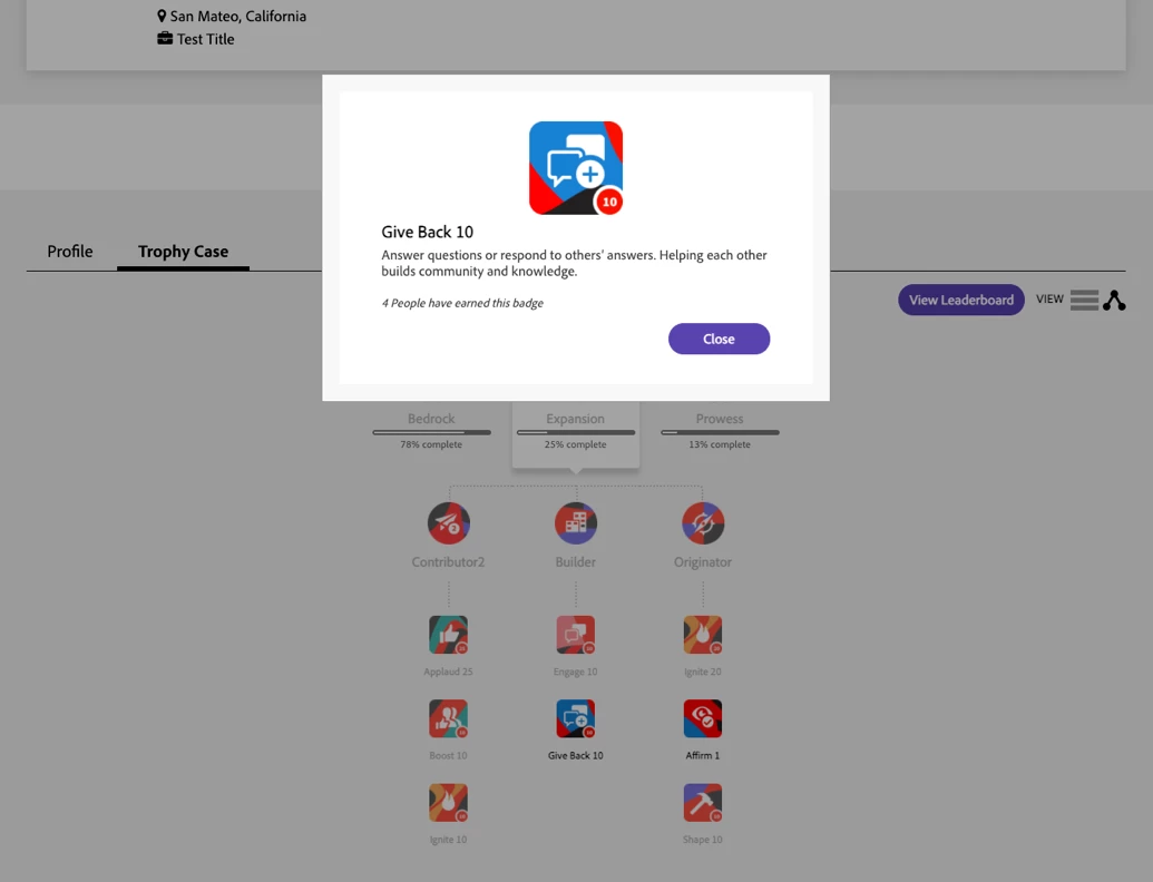 After numerous conversations with some of you, we know it’s important to you to not only see the badges your peers’ have but understand what they did to earn those badges. We created an experience that makes it easy to see how a badge is earned and gives you the ability to showcase your favorite badges and community achievements.
