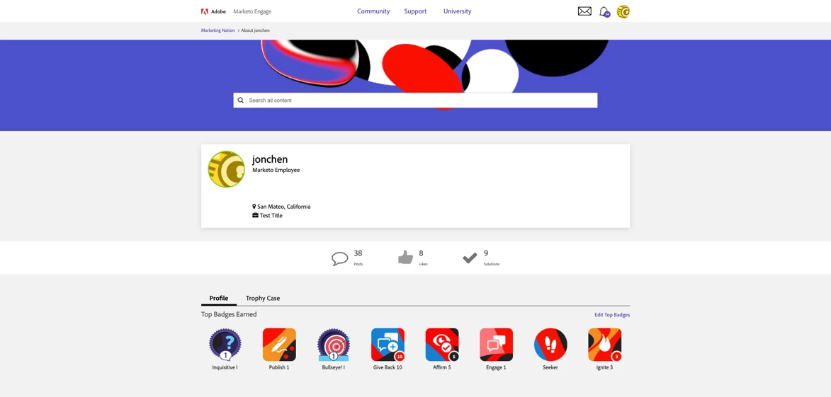 The top badges are your calling card. What do you want your peers in Community to know about you? If you spend most of your time on Community providing solutions for others, you might want to show off your Affirm badge, which is awarded to users who’ve accumulated a substantial number of accepted solutions. Drag your Affirm badge to your “Top Badges Earned” section and, not only will this be the first thing that users see when visiting your profile, but it will also be visible on your hovercard, which appears anytime a user hovers their cursor over your Community profile.