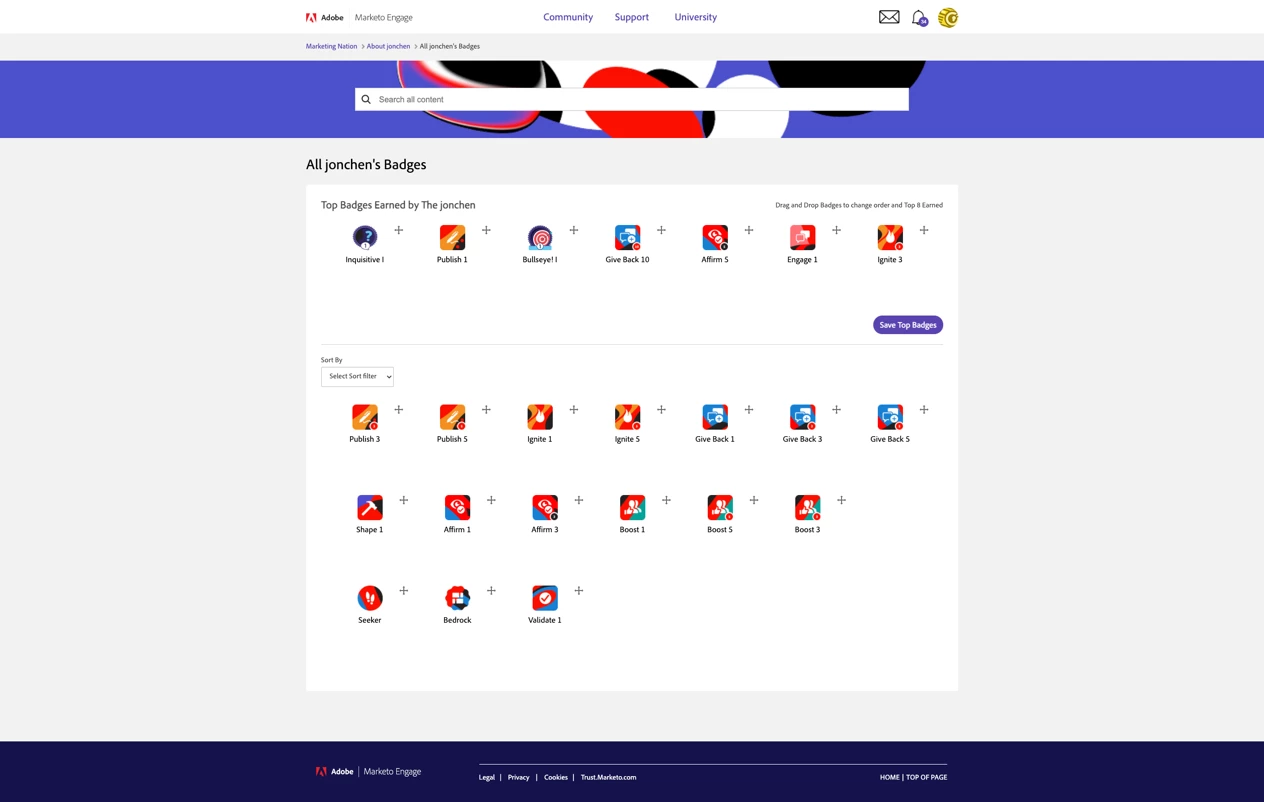 If you still prefer the conventional format for badges, worry not! We’ll still be utilizing a horizontal display as the default view on your user profile – with a twist. The first row of this page will now be reserved for “top badges.” In your profile, you can customize which 8 badges show in the top badge area of your trophy case for all other Community members to see.