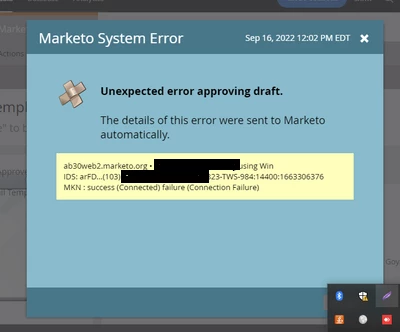 Getting error in approving the Master Template