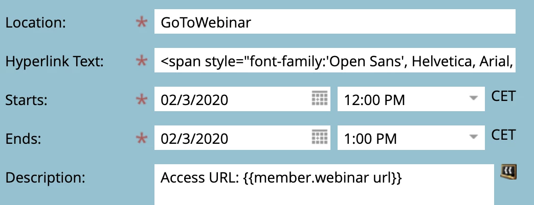 I don't know why this token {{member.webinar url}} "Gotowebinar token" is not populated if I insert it into an email directly. However if I insert this token {{member.webinar url}} into the "My tokens" section of my program inside a calendar file token it is populated.