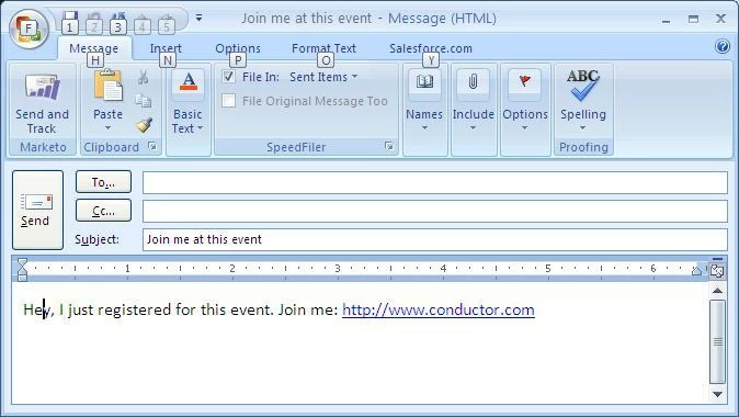 mailto:?subject=Join me at this event&body=Hey, I just registered for this event. Join me: {{my.RegistrationLink}}