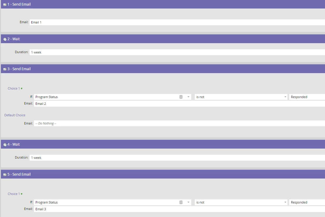 What is the best way to set this up since there are (1) 3 different emails (simple content with CTA to reply to email), (2) have different send schedules; and (3) will mostly be sent to the same group of people?
