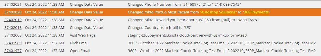 You can see that the form submission simply updated the mkto portco most recent rather than creating a duplicate