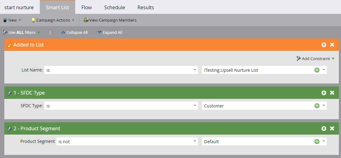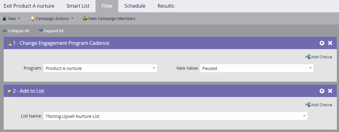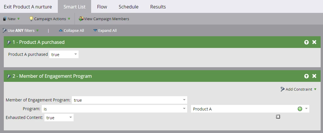 - Smart Campaign B: "Remover" trigger campaign that listens for when a lead should be removed from flow of Smart Campaign A and (optionally) removed from list "nurture list"