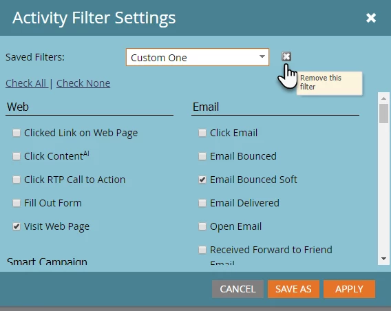 I was trying to set up a custom filter in the Activity Log but needed to modify them, and so I have 2 filters I don't need anymore and would rather delete or else I may get confused which one to use moving forward.
