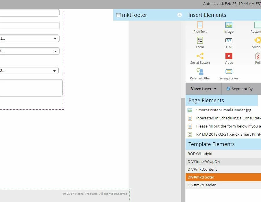 Highlight this landing page from the left navigation menu. You can then see which landing page template it is using and you can click on it to be redirected. This is where you can change the date at the footer.