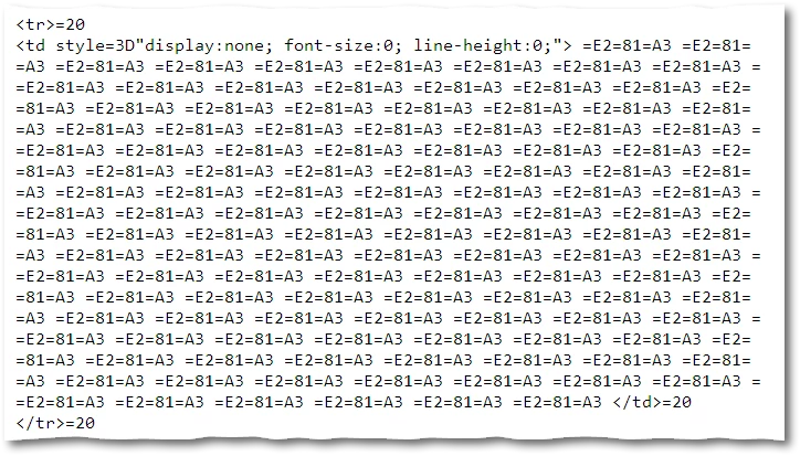 Well, that block isn’t as innocent as it looks. What you assume is a line break and/or ASCII spaces is actually a series of Invisible Separator (U+2063) characters. You can see them in the qp-encoded raw email: