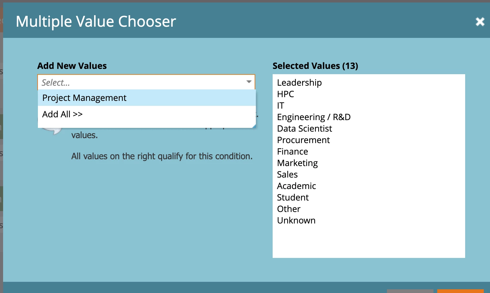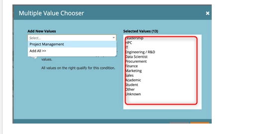 Hello! I am trying to find a way to add more Job Functions into Marketo. At the moment what we have is seen above, all the info I am finding is on how to create job function segments but I just need to add more to the list seen in the screen shot