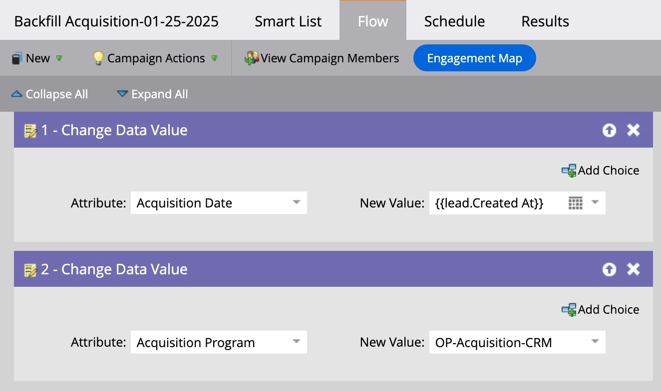 - Next, I’ll create a batch smart campaign for this one time backfill:
