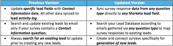 SurveyMonkey just announced an enhancement to their Marketo connector that will enable you to directly map a survey monkey answer to a Marketo field. Here is the email we received: