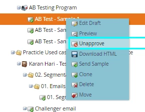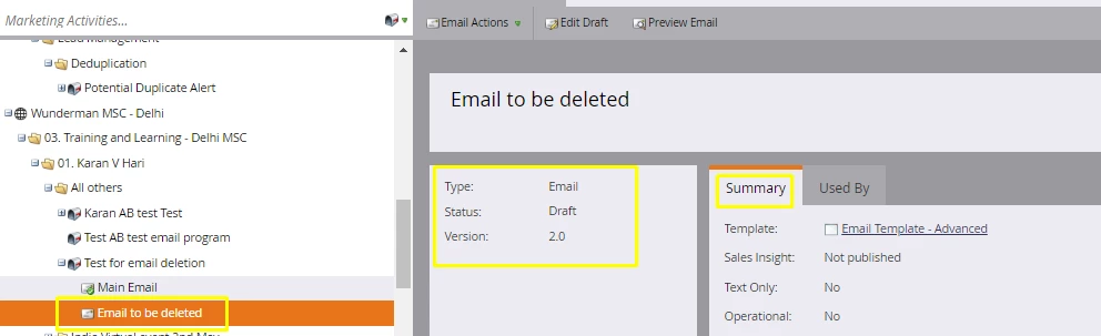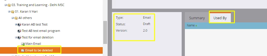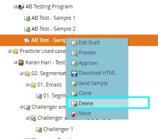 I have created an email program that is compossed by two assets. Two emails. One of them is a test, therefore I want to have it deleted, but I do not want to delete the whole program as there is an email that I want to still keep.