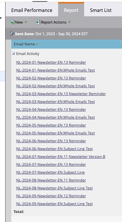 - Choose the right report type you're looking for (e.g. Email Performance Report)