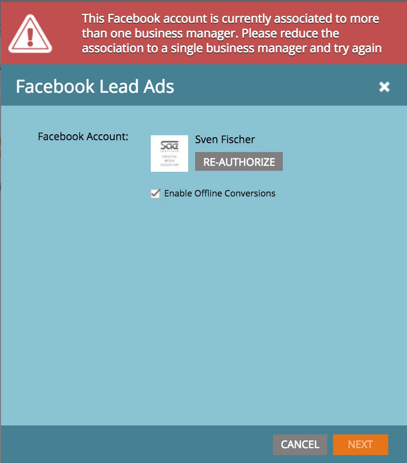 I am in need to enable facebook offline conversion in marketo but unable to do that. It is showing below error: