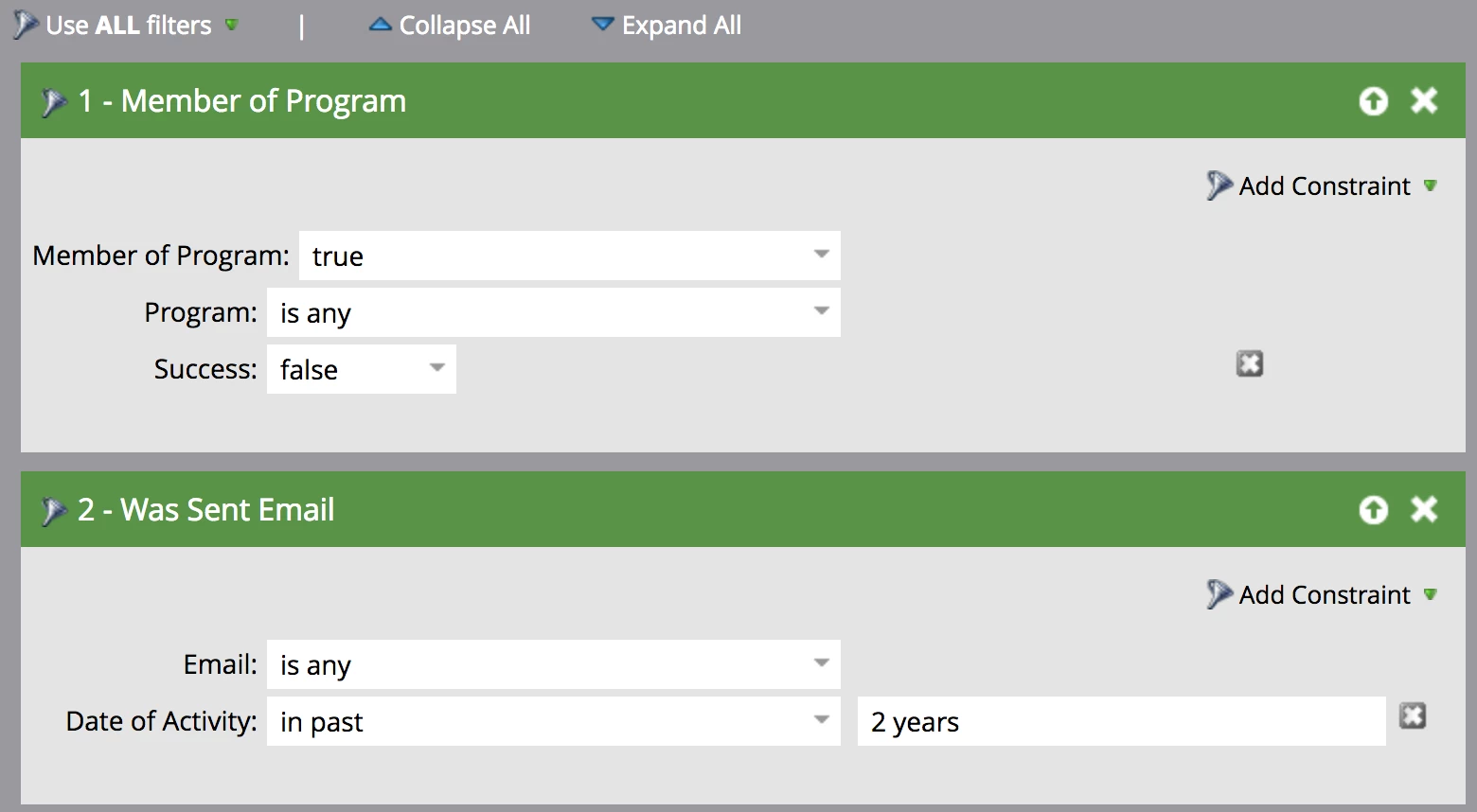 Hi Team, How can i prepare a list of people with no 'Success' from all associated campaigns in the last 24 months? Please suggest the filters i should use?