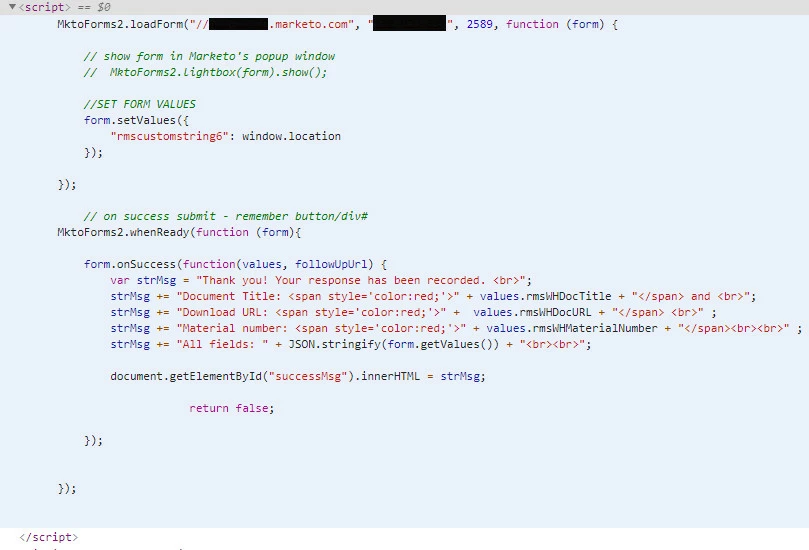 I'm trying to display the information sent by API call back to the web page that hosts the Marketo form.