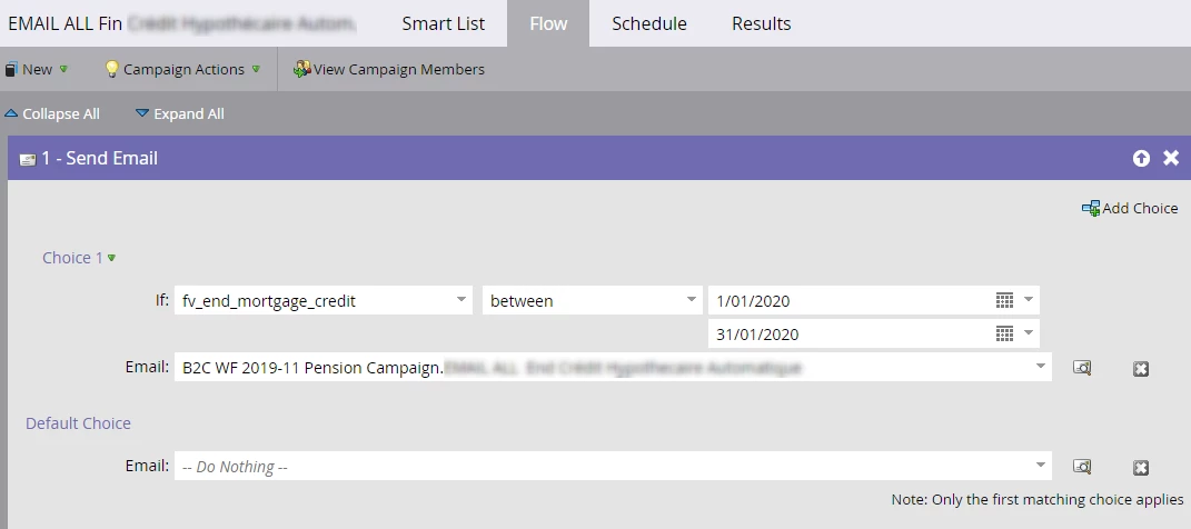 This operation is not at all automatic because I am obliged to choose a specific date. So the following I'll repeat my operation... Not really automatic marketing