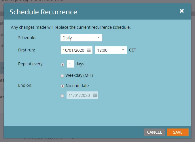 My clients have mortgages that end on a specific date. I would like to send them an email 1 month after this date.