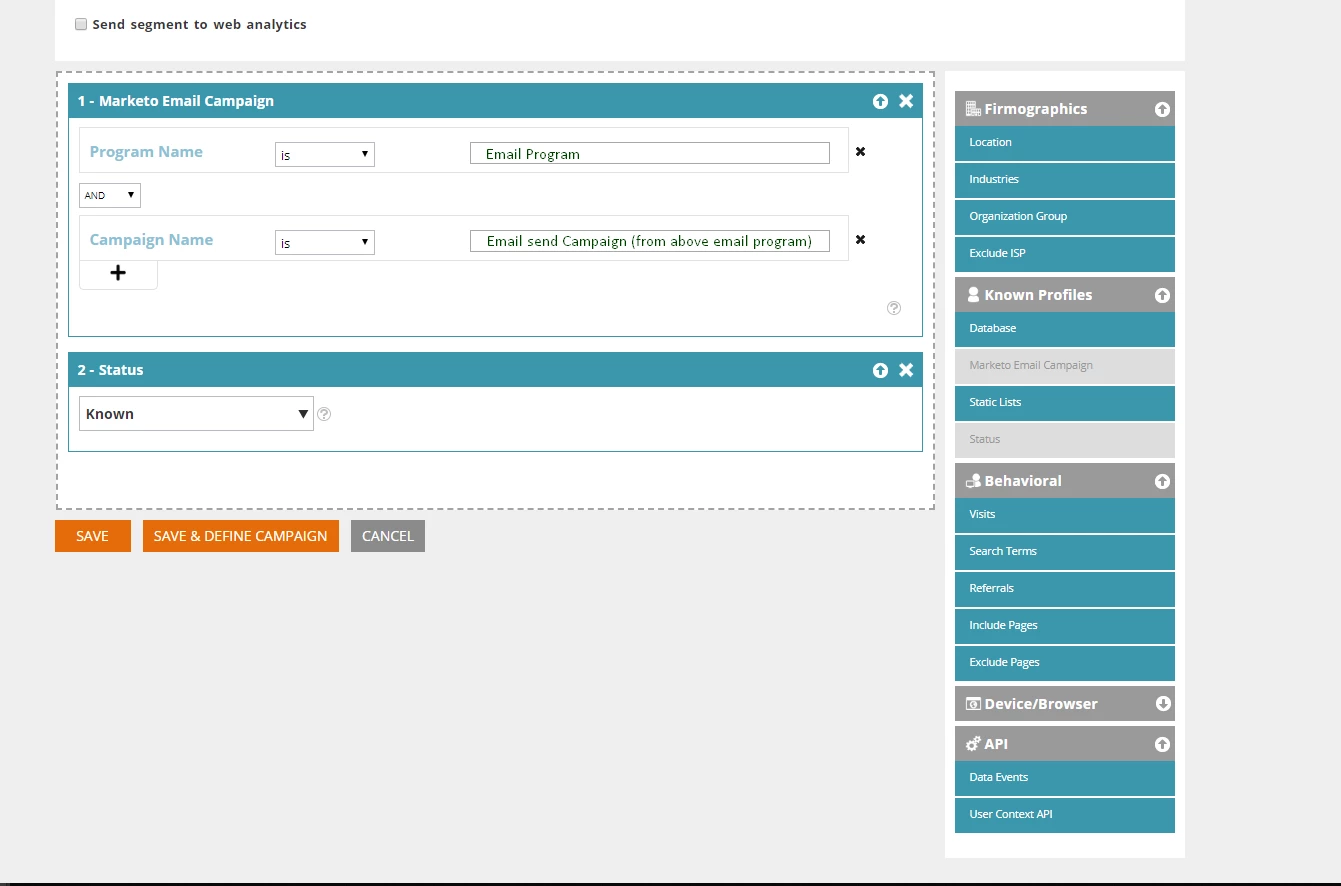 I do understand that in order to run a Web Personalization campaign, first a web segment has to be defined. I have narrowed it down to - Whats depicted in the below snapshot. Still cant seem to narrow it down to "Open/Clicks" for a specific email.