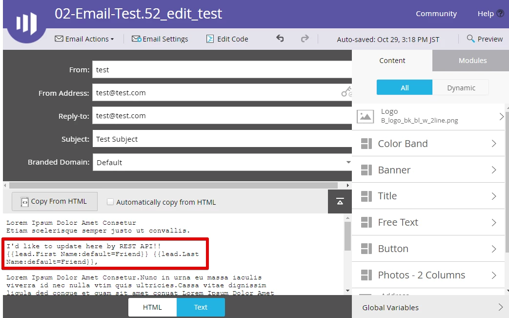 How to update a plain-text email by using REST API?