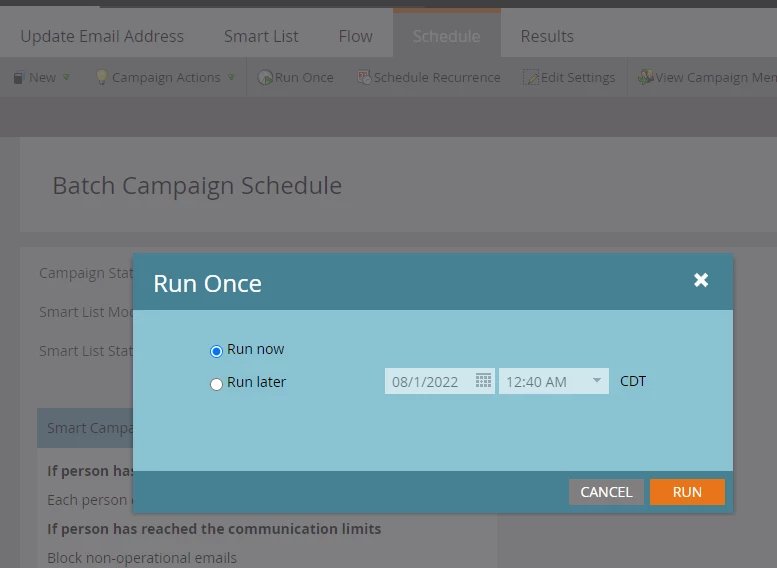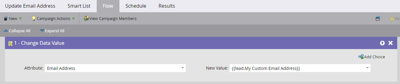Run the smart campaign from the schedule tab. Standard email address field values should get updated with the custom email address field's values once the campaign completes its run for the qualified people.