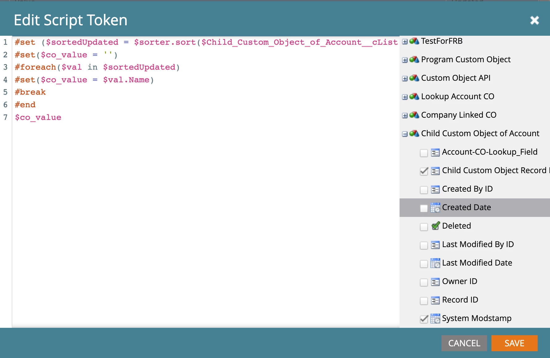 How to use SFDC Custom Objects associated with SFDC Accounts in Velocity Scripts