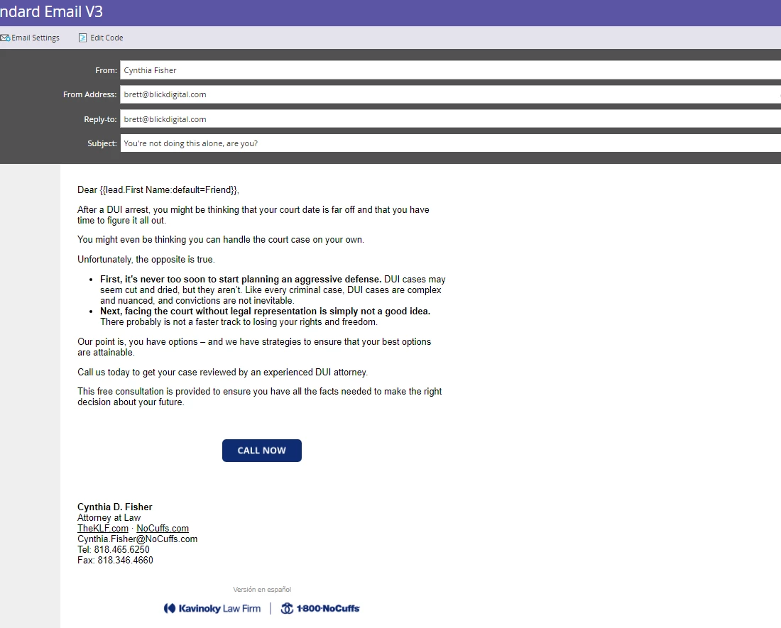 <p><strong>Cynthia D. Fisher</strong><br />Attorney at Law<br /><span style="color: #000000;"><a href="theklf.com/" target="_blank" title="KLF Website" id="" style="color: #000000;">TheKLF.com</a> · <a href="nocuffs.com/" target="_blank" title="NoCuffs Website" id="" style="color: #000000;">NoCuffs.com</a></span><br />Cynthia.Fisher@NoCuffs.com<br />Tel: 818.465.6250<br />Fax: 818.346.4660<br /><br /></p>