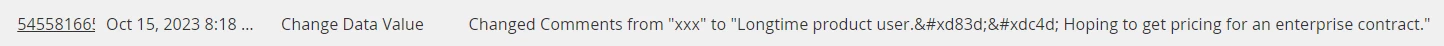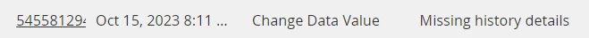 The only evidence that something went weird is the Change Data Value, which has “Missing history details”.[1] The requested value and actual value differ, so logging of the new/old value goes haywire: