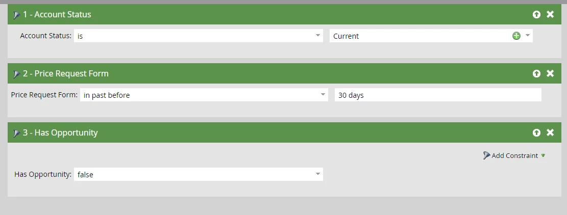 Ex. In this batch campaign when the price request form date is 30 days ago, I need it to run the flow. Is this correct? or would I need to use a different date filter like "in past". It can't be a specific date because it's a campaign that will be scheduled to run daily.