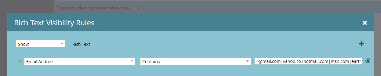 In Visibility Rules, “Contains” means a regular expression, not a simple string match