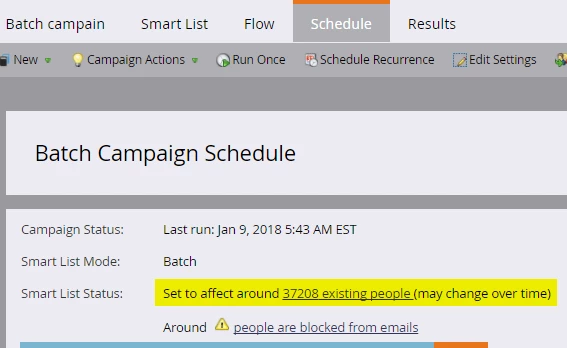 Incorrect impact of Batch Campaign, which references a Smart list with Random Sample