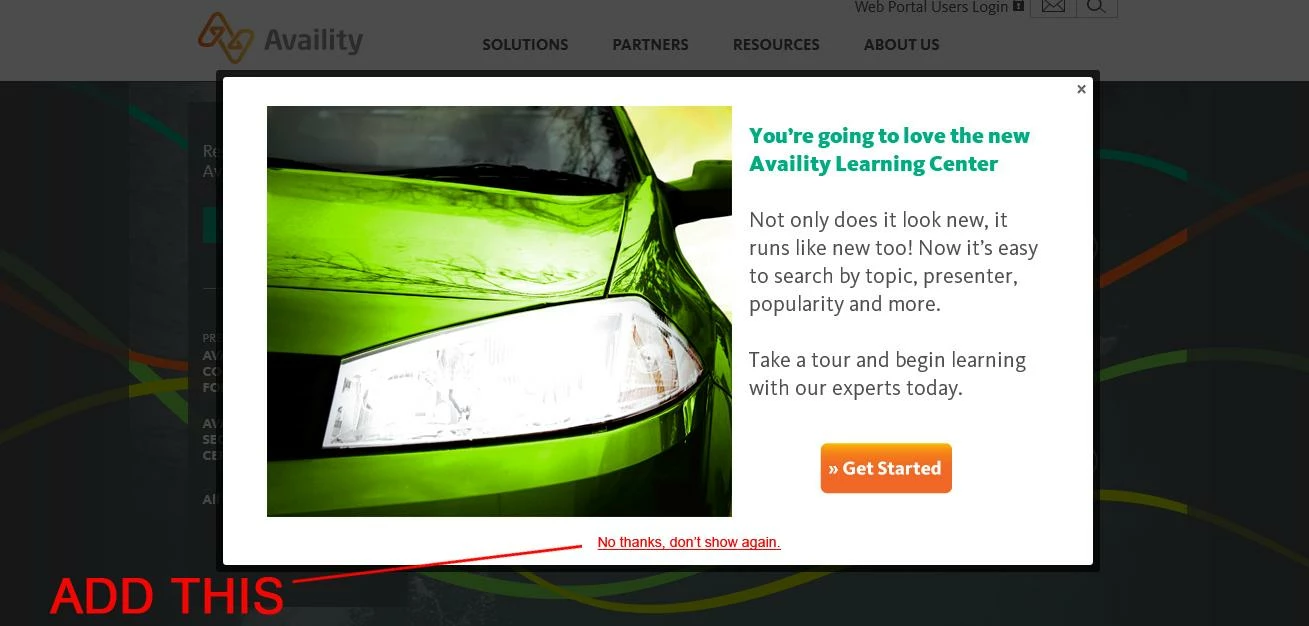 Please add a "Do not show this message again" option in an RTP Dialog campaign. Currently users who are presented with a modal campaign can only A.) wait the predetermined time limit for the modal to close automatically B.) can click on the "X" in the top right corner.