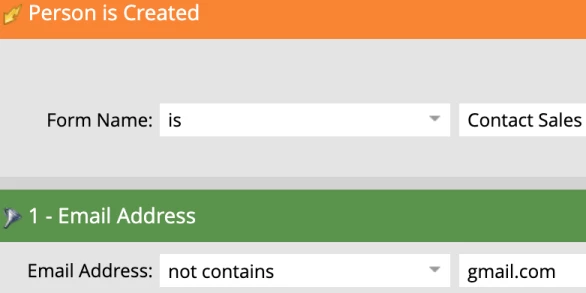 For example, you might not want to send freemails to Zapier for classification since ChatGPT will likely not be able to find much about these people. Additionally, you can also use constraints on the “Person is Created” trigger to only classify people created from certain forms or lists or who are created with a certain “Person Source”.