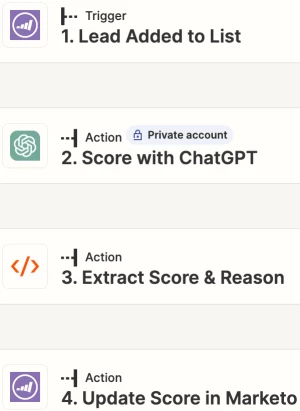 We will be using webhooks and the Zapier automation tool to query ChatGPT for the classification of new leads created in Marketo and then update these new leads with this classification.