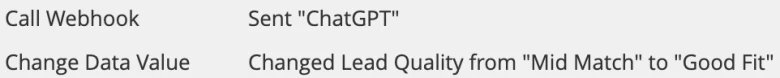 Finally, once we have extracted the fit and reason we can use the “Create/Update” lead action to update the lead by populating their lead quality fields with the GPT classification and reason.