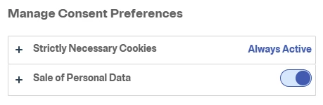 California’s CCPA and CCRA require opt-in to share or sell personal data, so make sure you offer that setting alongside your existing cookie options. If you happen to use OneTrust, here’s how that looks: