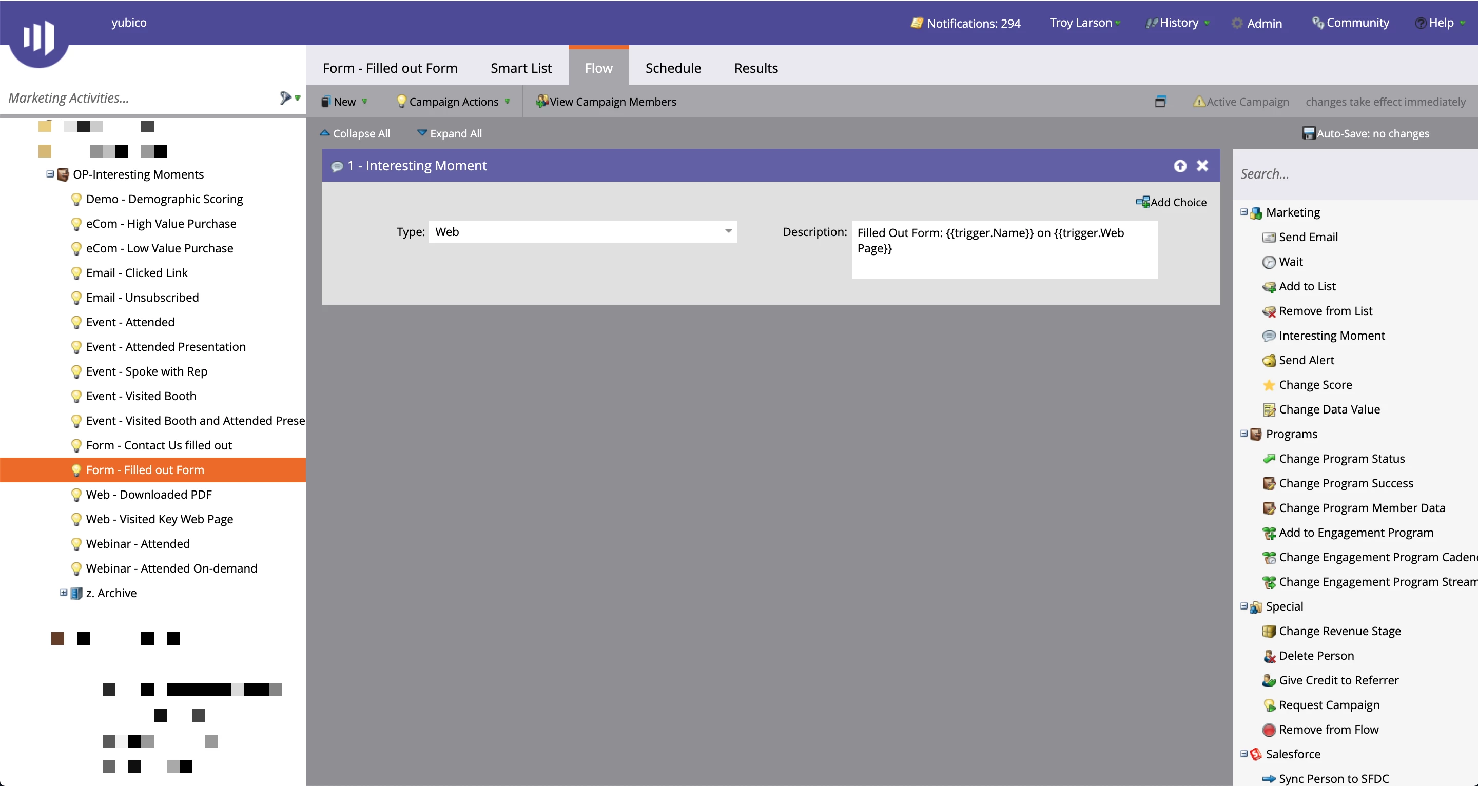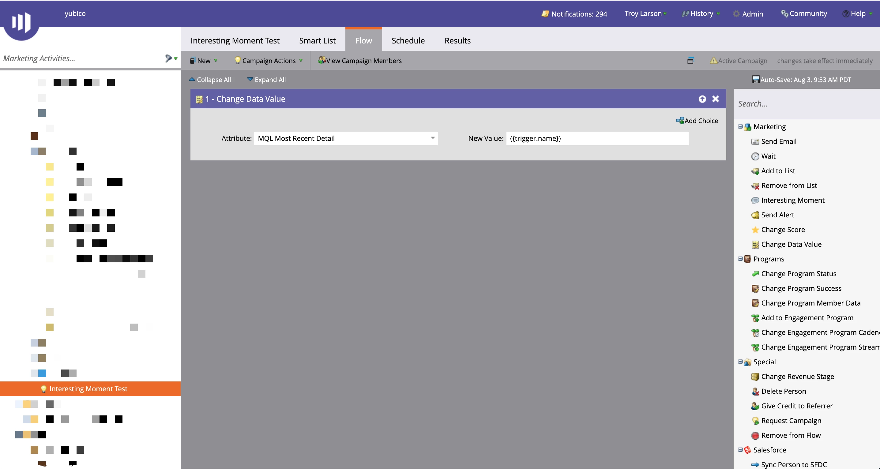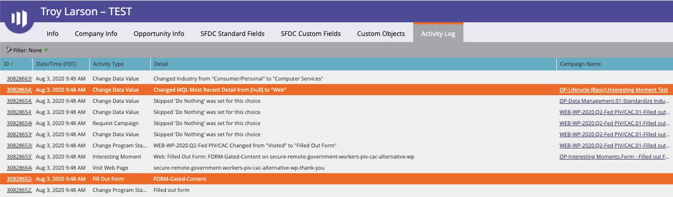 Now, when a lead becomes an MQL I'd like to transfer that Interesting Moment over to a custom SFDC field called MQL Most Recent Detail.