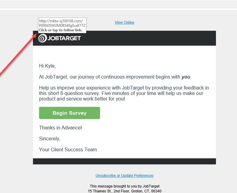 Notice how hovering over a clickable element shows the Marketo redirect.