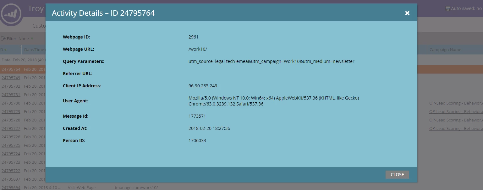 If we use my www.ABCcompany.com/AD example. Say I type that in and I'm known to ABCcompany's Marketo. Is there a way we can pull a report that says "Troy" clicked that link? I've reached out to support and haven't had much luck, so was hoping that someone here may know a bit more....