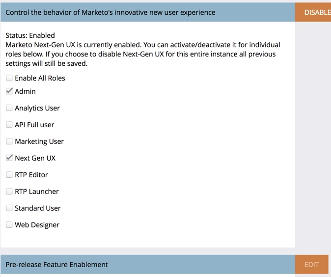 Is it possible to turn on next-gen ux for only admins? Can it be disabled after the fact?
